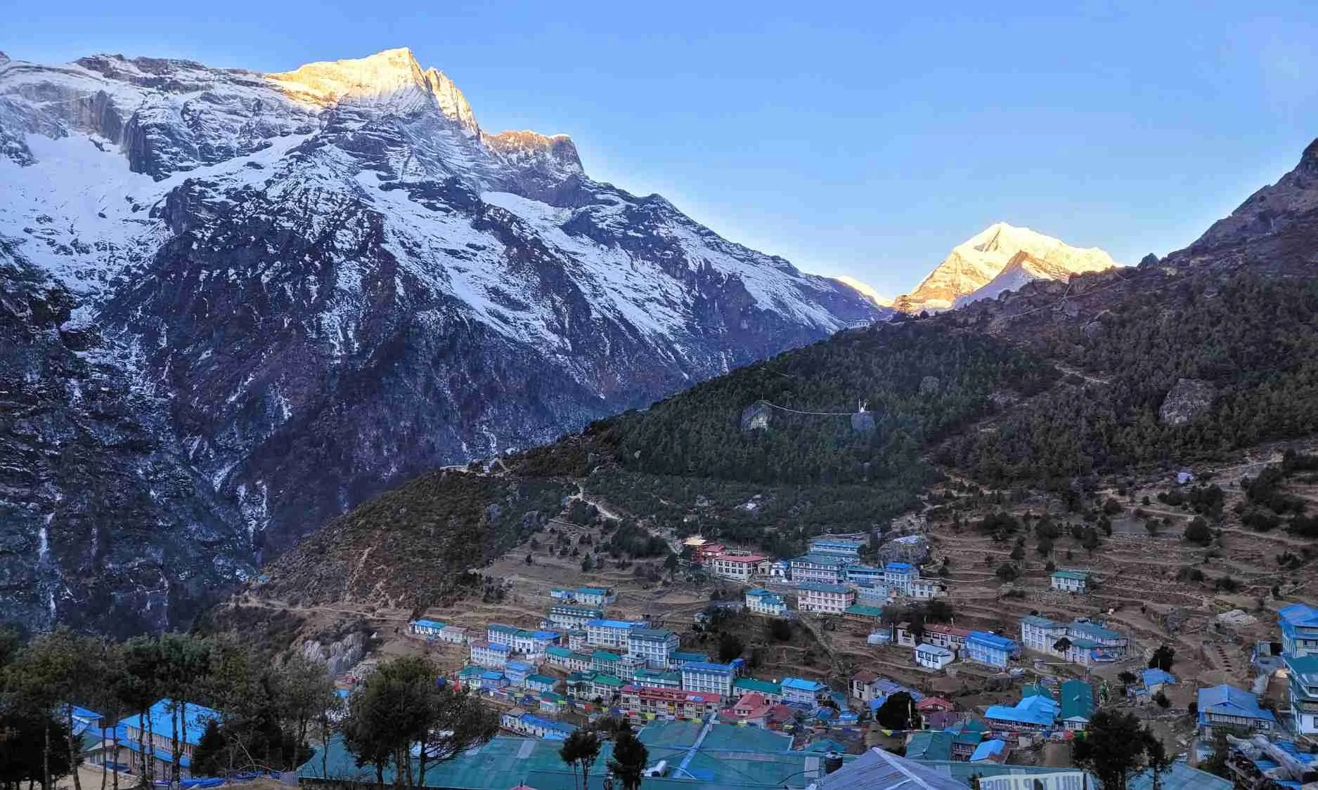 Sagarmatha National Park welcomes us after securing our permits. After that, we ascend gradually to Namche Bazaar, the famed Sherpa capital. This vibrant mountain hub becomes our base for two nights. Local exploration fills our time in this unique mountain setting.